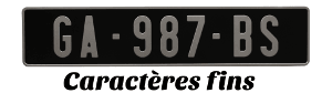 Premium version, this plate goes through a hot-stamping for the coloring of digits. Usually used for international plates (German, Swiss, Italian plates, etc.), this finish has been applied on this french model, exclusively. The size can sometimes vary of few millimeters. The digits are in relief.