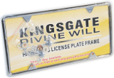 US California Sunsuet aluminum license plate, with the text OUTATIME.