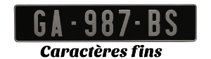 Pour la réalisation de votre plaque, choisissez la forme des caractères et la présence ou non de tirets dans la liste d'options.
